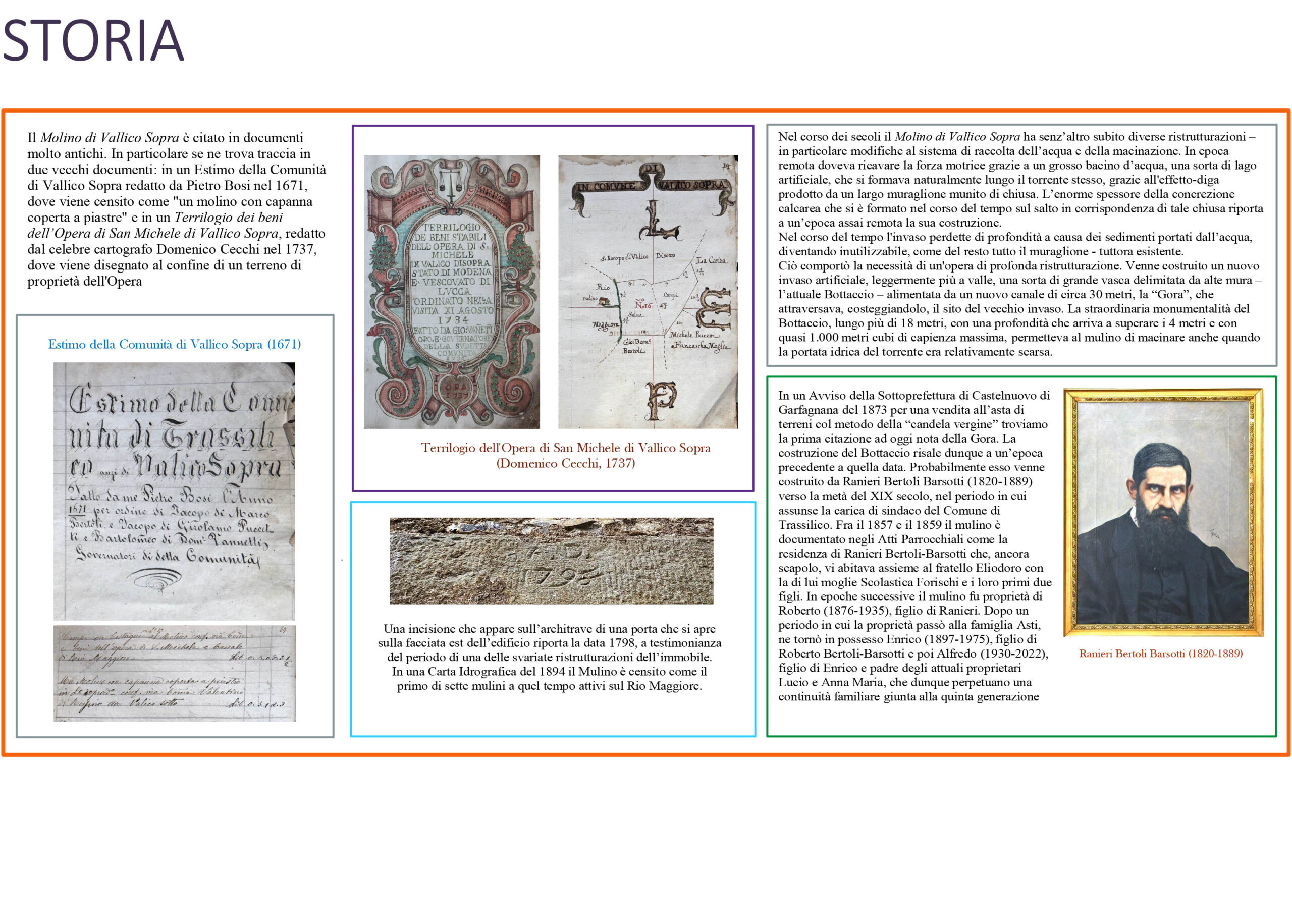 L’Antico Molino di Vallico Sopra Un originale progetto per il recupero della parte idraulica e il restauro del grande Bottaccio Segui le fasi Una Visita al mulino e al suo Bottaccio il Mulino è aperto al pubblico per visite su richiesta, per ritrovare un antico tesoro del territorio e riscoprire le tradizioni della Garfagnana. Prenota la tua visita IL Progetto La Ruota La Storia Vedute Dall'Alto La Grande Ruota Sorvolando... Il nuovo Bottaccio LA Gora di adduzione Il riempimento d'acqua Camminamenti Il Voltone la storia del Mulino DellA Famiglia Bertoli Barsotti Segui la storia della famiglia e del suo Mulino Approfondimenti Privacy policy